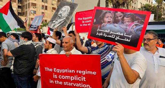 ادھر لیبیا کے دارالحکومت طرابلس میں مصری سفارتخانے کے باہر مظاہرین نے جمع ہو کر رفح بارڈر کو فوری طور پر کھولنے اور غزہ کے عوام تک انسانی امداد کی رسائی کا مطالبہ کیا۔
