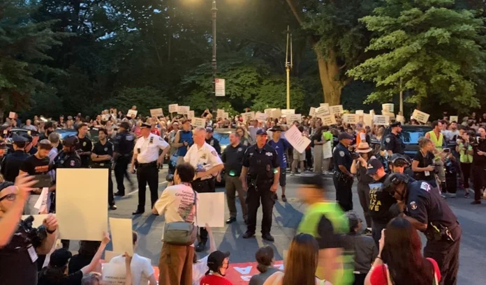 نیویارک (مشرق نامہ) – نیویارک کے ٹرمپ انٹرنیشنل ہوٹل کے باہر غزہ پر جاری جنگ اور انسانی بحران کے خلاف ایک احتجاجی مظاہرے کے دوران 40 سے زائد مظاہرین کو گرفتار کر لیا گیا۔ یہ احتجاج یہودی مخالف قبضہ گروہ IfNotNow کی جانب سے منظم کیا گیا تھا، جس میں سیکڑوں افراد نے "ٹرمپ: یہودی کہتے ہیں — بس بہت ہو گیا” کے بینر تلے کولمبس سرکل سے مارچ کا آغاز کیا۔