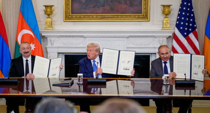 آذربائیجان اور آرمینیا نے جمعے کے روز امریکی صدر ڈونلڈ ٹرمپ سے ملاقات کے دوران امریکی ثالثی میں ایک امن معاہدے پر دستخط کیے، جس سے دونوں ممالک کے درمیان خطۂ قرہ باغ پر دہائیوں سے جاری تنازع ختم کرنے کی راہ ہموار ہوئی۔