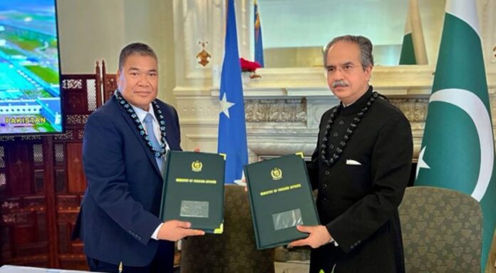 پاکستان کے مستقل نمائندہ برائے اقوام متحدہ سفیر عاصم افتخار احمد اور مائکرونیشیا کے مستقل نمائندہ سفیر جیم ایس لپوے نے دونوں ممالک کے درمیان تعلقات کی باضابطہ تشکیل کے لیے مشترکہ اعلامیہ پر دستخط کیے۔