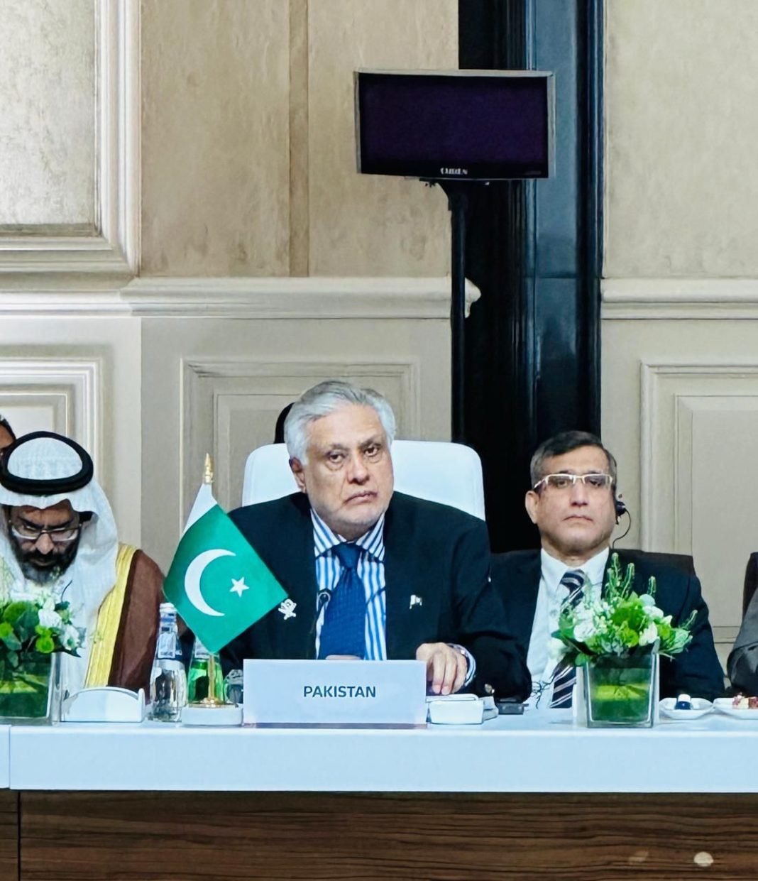 اسحاق ڈار نے زور دیا کہ عرب و اسلامی دنیا کو اسرائیل کو جنگی جرائم اور انسانیت کے خلاف جرائم پر جواب دہ بنانا ہوگا اور مزید خلاف ورزیوں سے روکنے کے لیے اضافی تعزیری اقدامات پر غور کرنا چاہیے۔