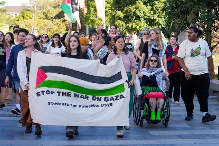 کئی مظاہرین نے "پریس” کے جیکٹ پہنے ہوئے تھے، جن پر شہید صحافیوں کے نام درج تھے۔ ایک ریلی شرکاء نے اے بی سی کے عملے کو "اسرائیل” کی غزہ میں جنگ کے دوران ہلاک کیے گئے صحافیوں کی فہرست بھی پیش کی۔