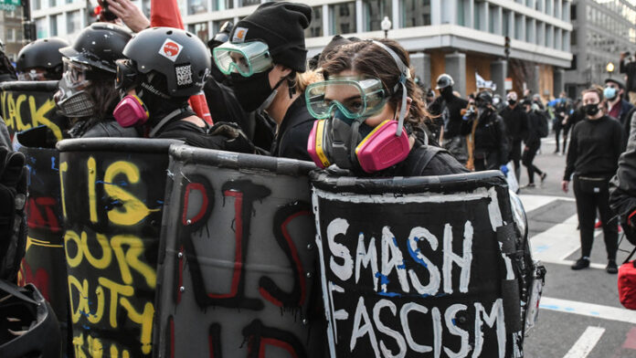 اینٹیفا، جس کا مطلب "اینٹی فاشسٹ” ہے، سیاہ لباس اور نقاب پہننے والے بائیں بازو کے کارکنوں کا ایک غیر رسمی نیٹ ورک ہے جو قدامت پسند اجتماعات کو پرتشدد طور پر منتشر کرنے اور دائیں بازو کے مظاہرین اور پولیس کے ساتھ جھڑپوں کے لیے جانا جاتا ہے۔