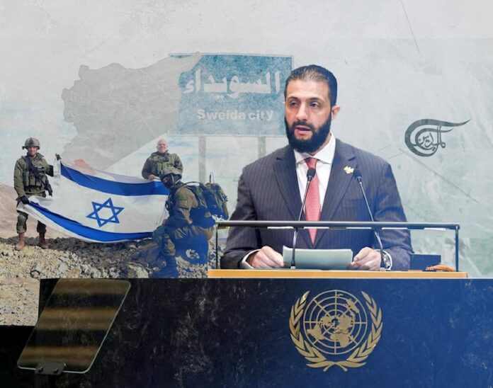 عبوری انتظامیہ کے صدر احمد الشراع، جو اب بھی اقوام متحدہ کی سلامتی کونسل کی دہشت گردی کی فہرست میں شامل ہیں، ایک امریکی سیکیورٹی چھوٹ کے تحت نیویارک پہنچے۔