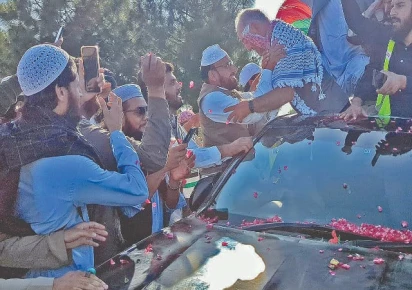 جماعتِ اسلامی، جمعیت علمائے اسلام (ف)، سینٹرل مسلم لیگ، تحریک لبیک پاکستان اور دیگر جماعتوں کے کارکن بڑی تعداد میں ایئرپورٹ پر موجود تھے۔ مشتا ق احمد کو قافلے کی صورت میں ایئرپورٹ سے روانہ کیا گیا، جہاں وہ ہاتھ ہلاتے اور عوامی ہجوم سے خطاب کرتے رہے۔