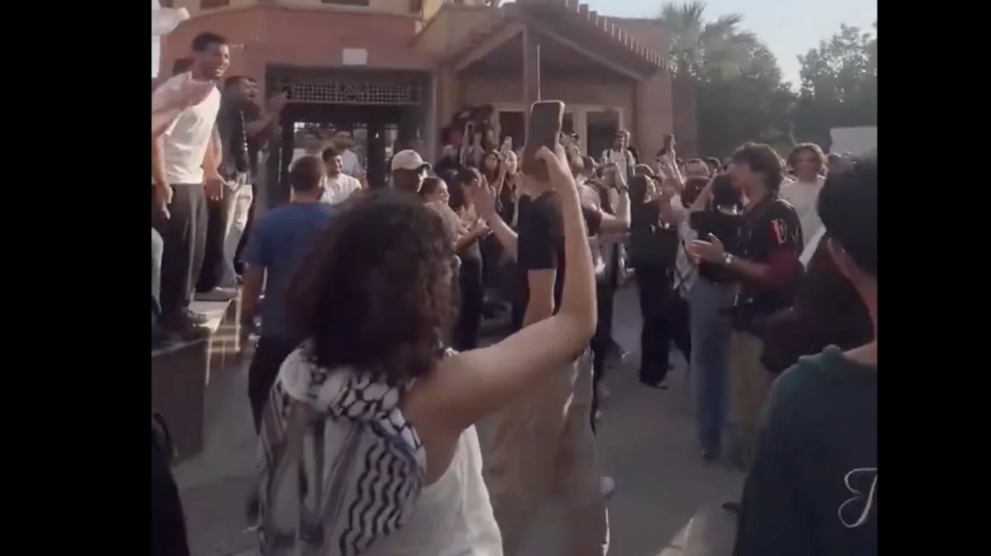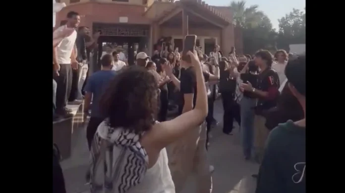 سوشل میڈیا پر گردش کرتی ویڈیوز میں دیکھا گیا کہ درجنوں کی تعداد میں متنوع پس منظر رکھنے والے مصری طلبہ یونیورسٹی کے احاطے اور راہداریوں میں جمع ہوکر کرٹزر کے خلاف نعرے لگا رہے تھے۔ کئی طلبہ فلسطینی کفیہ اوڑھے ہوئے اور فلسطینی پرچم تھامے ہوئے تھے۔