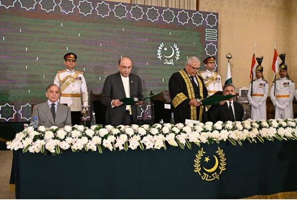 مانیڑنگ ڈیسک (مشرق نامہ)اسلام آباد میں پہلی وفاقی آئینی عدالت (Federal Constitutional Court) کے چیف جسٹس، جسٹس امین الدین خان نے جمعہ کے روز حلف لیا۔ صدر آصف علی زرداری نے انہیں عہدے کا حلف دلایا۔ تقریب میں وزیراعظم شہباز شریف، ڈپٹی وزیراعظم اسحاق ڈار، چیئرمین سینیٹ سید یوسف رضا گیلانی، اسپیکر قومی اسمبلی سردار ایاز صادق، چیف جسٹس سپریم کورٹ جسٹس یحییٰ افریدی، چیف آف آرمی اسٹاف فیلڈ مارشل سید عاصم منیر، دیگر اعلیٰ حکام اور وفاقی وزراء بھی موجود تھے۔