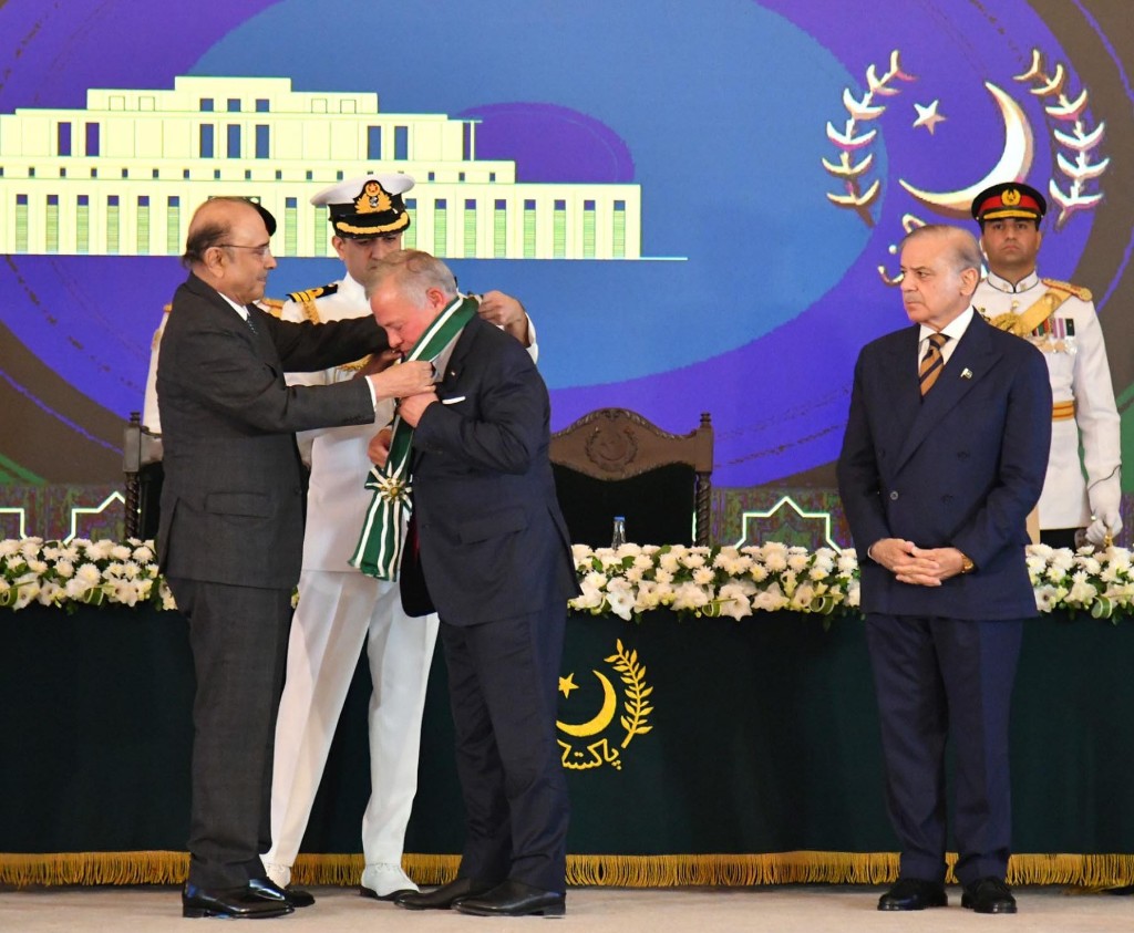 بعد ازاں ایوانِ صدر میں ایک خصوصی تقریب میں صدر آصف علی زرداری نے شاہ عبداللہ دوم کو نشانِ پاکستان کا اعزاز عطا کیا۔