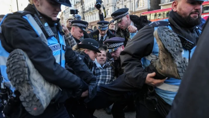 لندن (مشرق نامہ) – بدھ کے روز لندن میں پولیس نے ہائی کورٹ کے باہر ان مظاہرین کو گرفتار کر لیا جو فلسطین ایکشن پر عائد پابندی کے خلاف احتجاج کر رہے تھے، جبکہ گروپ کی شریک بانی کی نمائندگی کرنے والے وکلا نے برطانوی حکومت کے اس فیصلے کے خلاف دلائل دیے کہ تنظیم کو دہشت گرد گروپ قرار دیا گیا ہے۔