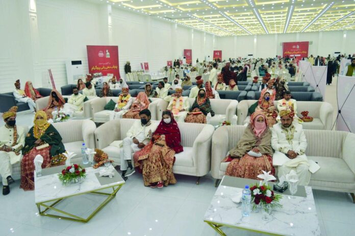 پنجاب حکومت کے "دھی رانی” پروگرام کے تحت راولپنڈی میں 36 مستحق مسلم اور غیر مسلم جوڑوں کے لیے ایک بڑے اجتماعی شادی کی تقریب منعقد کی گئی۔ یہ تقریب شہر کی سب سے بڑی مارکی میں منعقد ہوئی، جہاں دلہنوں کو مفت زیورات، بنیادی ضروری جہیز اور دعاؤں کے ساتھ رخصت کیا گیا۔ فنکاروں نے روایتی پنجابی رقص اور شادی کے گیت پیش کیے۔ جہیز اسلامی شریعت کے مطابق ترتیب دیا گیا، اور مہر کی اہمیت کو واضح طور پر اجاگر کیا گیا۔ تمام دولہوں کو سختی سے ہدایت دی گئی کہ یہ پنجاب کی بیٹیاں ہیں، اور انہیں ان کی خوشیوں اور عزت کا مکمل خیال رکھنا ہوگا۔ یہ بھی تاکید کی گئی کہ اگرچہ ان کی تنخواہیں کم ہو سکتی ہیں، لیکن وہ اپنی بیویوں کو عزت اور وقار کے ساتھ رکھیں۔ انہیں بتایا گیا کہ یہ غریب بیٹیاں ان کے گھروں کو جنت بنا دیں گی، لیکن اگر کسی دولہا نے ناانصافی کی تو پنجاب حکومت کارروائی کرے گی۔ ہر جوڑے کو تقریب میں 10 اہل خانہ کو مدعو کرنے کی اجازت دی گئی۔ دولہا اور دلہن کے اہل خانہ کو حکومتی گاڑیوں میں مکمل پروٹوکول کے ساتھ تقریب گاہ پہنچایا گیا۔ حکومت کی جانب سے تمام جوڑوں کو مفت شادی کے لباس بھی فراہم کیے گئے۔ تقریب کے موقع پر مہمانِ خصوصی کے طور پر خطاب کرتے ہوئے پنجاب کے وزیرِ ٹرانسپورٹ بلال اکبر نے دولہوں پر زور دیا کہ وہ اپنی بیویوں کو خوش رکھیں۔ "وزیرِ اعلیٰ مریم نواز عوام کی فلاح و بہبود کے لیے کام کر رہی ہیں،” انہوں نے کہا، اور احساس کارڈ اور ہیلتھ کارڈ جیسے پروگراموں کو ایک بڑی کامیابی قرار دیا۔