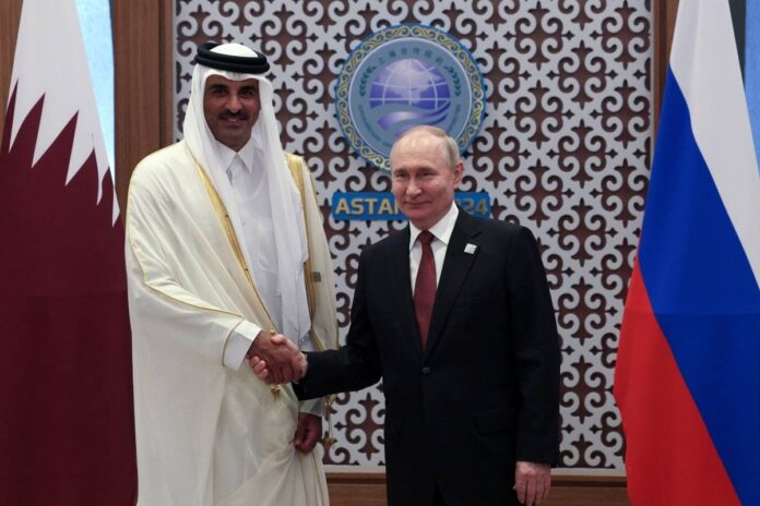 قطر کے امیر، شیخ تمیم بن حمد آل ثانی، اور روسی صدر ولادیمیر پیوٹن نے جمعہ کے روز دوطرفہ تعلقات اور علاقائی و بین الاقوامی امور پر تبادلہ خیال کیا، اناطولیہ نیوز ایجنسی کی رپورٹ کے مطابق۔