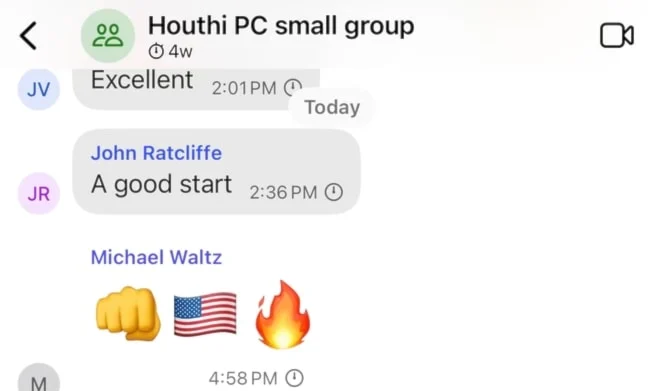 یہ چیٹ گروپ، جس کا نام "حوثی PC اسمال گروپ” تھا، میں شامل اراکین میں وزیر دفاع پیٹ ہیگسیث، قومی سلامتی کے مشیر مائیکل والٹز، نائب صدر جے ڈی وینس اور دیگر اہم عہدیدار شامل تھے۔ یہاں حملوں کے وقت، اہداف اور اسلحے کے بارے میں تفصیلات پر تبادلہ خیال ہو رہا تھا— ایسی معلومات جو عام طور پر خفیہ سرکاری نظام تک محدود ہوتی ہیں۔