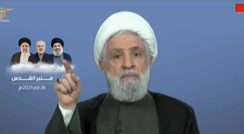 شیخ قاسم نے فلسطینی عوام کی جدوجہد کو خراج تحسین پیش کرتے ہوئے کہا کہ انہوں نے مزاحمت کی لازوال مثال قائم کی ہے اور القدس کی آزادی کی راہ میں عظیم قربانیاں دی ہیں۔ ان کا کہنا تھا کہ اسرائیلی منصوبے کا مقصد خطے کو تقسیم کر کے مشرق وسطیٰ پر تسلط قائم کرنا اور فلسطینیوں کو مکمل طور پر بے دخل کرنا ہے، تاہم مزاحمتی قوتیں اس منصوبے کو ناکام بنانے کے لیے متحد ہیں۔