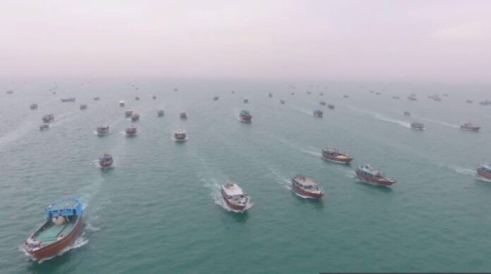لائیو فوٹیج میں دکھایا گیا کہ ایران کے بندر عباس میں ایک وسیع بحری پریڈ جاری ہے، جو غزہ سے اظہار یکجہتی کے لیے کی جا رہی ہے۔