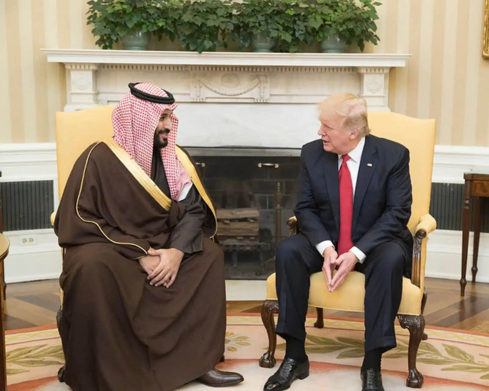 مئی 2017 میں اپنے پہلے غیر ملکی دورے کے دوران، ٹرمپ نے ریاض میں سعودی عرب کے ساتھ 110 ارب ڈالر کے ایک بڑے ہتھیاروں کے معاہدے پر دستخط کیے تھے، جس کے بارے میں ان کا کہنا تھا کہ اس سے "اربوں ڈالر اور لاکھوں روزگار” پیدا ہوں گے۔