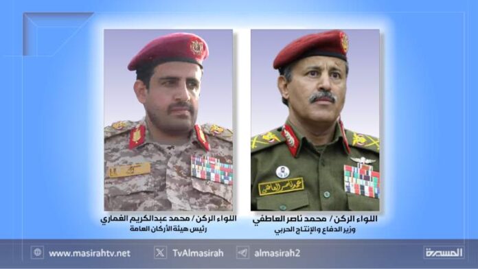 دانشگاه (نیوز ڈیسک) صنعا : یمن کے وزیر دفاع میجر جنرل محمد ناصر العاطفی اور چیف آف اسٹاف میجر جنرل محمد عبدالکریم الغماری نے عید الاضحیٰ کے موقع پر قائد انقلاب سید عبدالملک الحوثی کے نام اپنے تہنیتی پیغام میں اس عزم کا اعادہ کیا ہے کہ یمن کی مسلح افواج ظالم قوتوں کو کچلنے کا عمل جاری رکھے گی، صیہونی حمایت یافتہ جہازوں کو سمندروں میں غرق کرے گی، لڑاکا طیاروں کو مار گرائے گی اور جارح قوتوں کو تباہ کن جوابی حملوں سے دوچار کرے گی۔